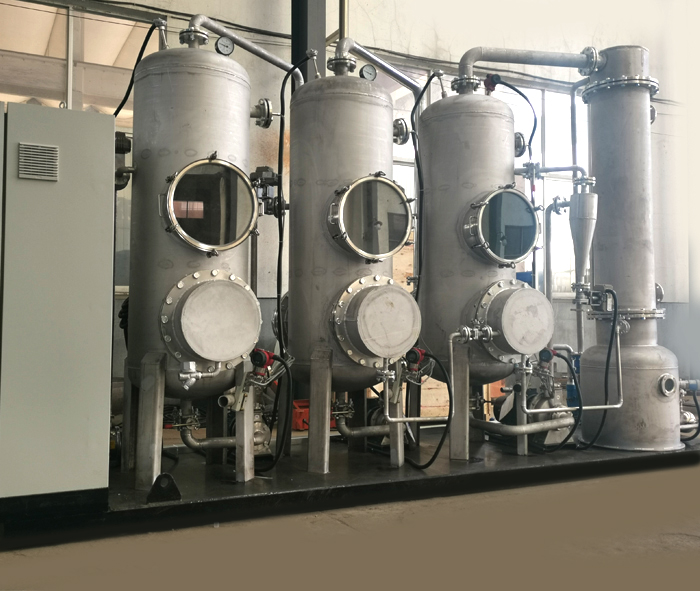 多效蒸發將幾個蒸發器串聯運行的蒸發操作,使蒸汽熱能得到多次利用,從而提高熱能的利用率,多用于水溶液的處理。在多效蒸發操作的流程中,第一個蒸發器(稱為第一效)以生蒸汽作為加熱蒸汽,其余的蒸發器(稱為第二效、第三效…)均以其前一效的二次蒸汽作為加熱蒸汽,從而可大幅度減少生蒸汽的用量。