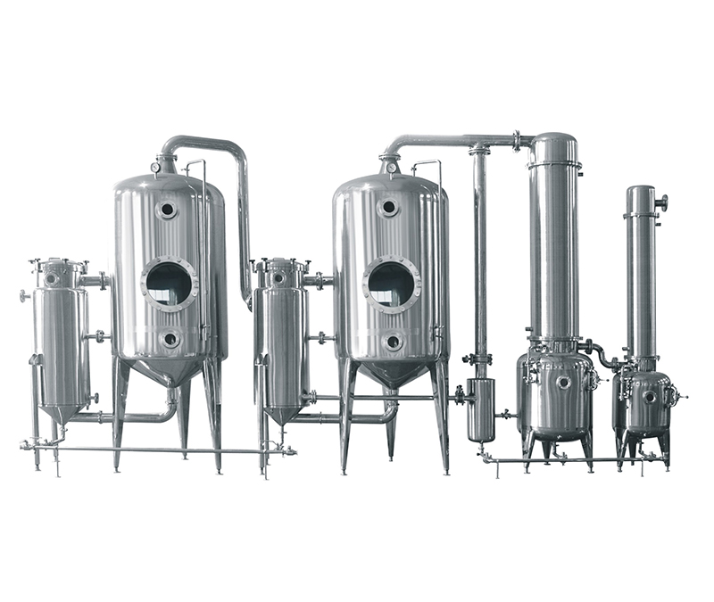 6.雙效濃縮設備有特殊構造,濃縮出來的物料具有味道濃,膏質均勻。使物料在密封中無泡沫狀態下進行濃縮,不易跑料,減少污染,當天物料當天濃縮,不易結焦,清洗方便,打開加熱器上下蓋即可清洗,并節約勞力,一人可以操作。